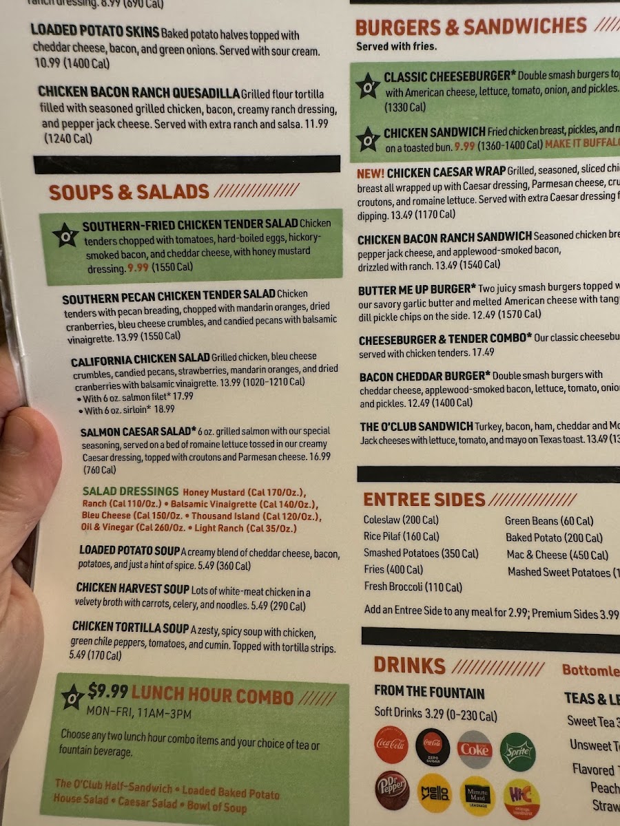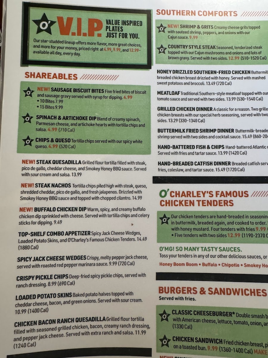 O'Charley's Restaurant & Bar - Barboursville Menu