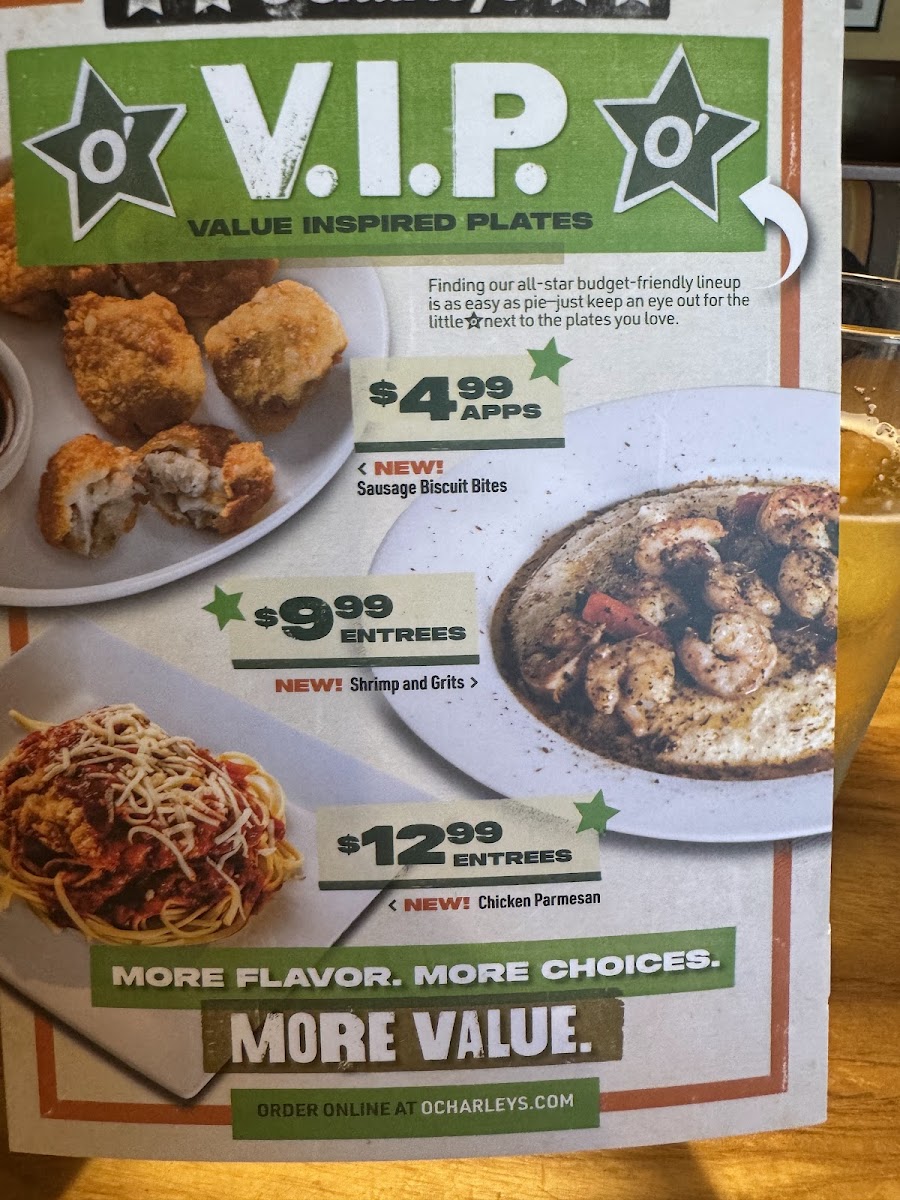 While some sides may benefit from larger portions, the overall experience at O'Charley's—marked by friendly service and a welcoming atmosphere—makes it a worthy option for those in search of a satisfying meal.